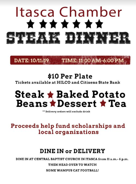 Support the Itasca Chamber of Commerce at their Annual Steak Dinner Fundraiser.