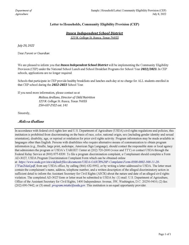 Food Services Community Eligibility Provision (CEP)
